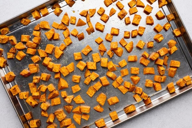 - 2 medium sweet potatoes, cut into ½ inch cubes